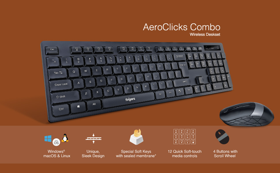 Fingers AeroClicks wireless keyboard and mouse. Silent keys.